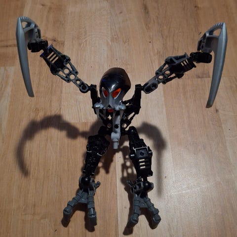 Figuurilta puuttuu hännän pää vaihdettu toisen väriseen, muuten hyvässä kunnossa Lego Bionicle Figuuri.