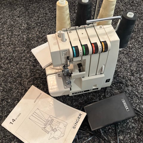 Käyttämätön noin puoli vuotta sitten tilattu Singer HD0405S Heavy Duty saumuri. Nelilankainen ja differentiaalisyötöllä varustettu overlock-saumuri . Soveltuu joustavien ja kudottujen kankaiden saumaamiseen, huolitteluun ja leikkaamiseen yhdellä työvaiheella. Lisäksi mukana käyttöohje suomeksi, mukana tulleet tykö tarpeet sekä 5000m polyesteriä lankarullia 4x musta, 4x valkoinen, 4x tummansininen, 4x harmaa.