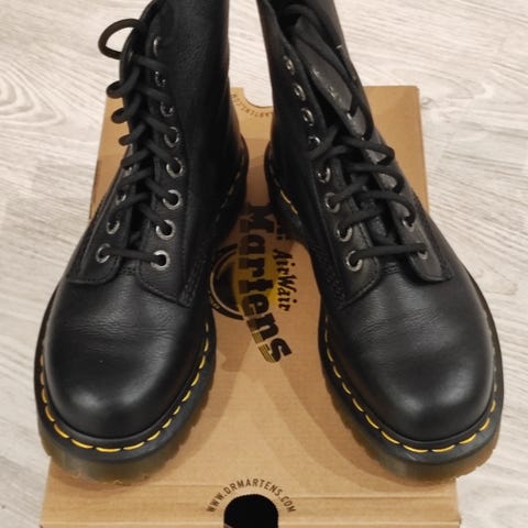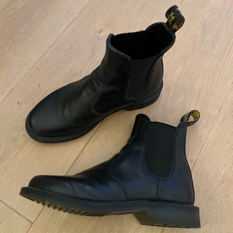 Dr. Martens saappaat, koko 38. Väri musta ja materiaali nahkaa. Nahka hyvässä kunnossa, ei haljennut tai rikki mistään. Vähän ja säästeliäästi käytetty. Malli on chelsea-tyylinen, jossa joustavat sivupaneelit ja vetolenkit kannassa pukemisen helpottamiseksi. Paksu kumipohja, jossa karkea kuviointi. Sopivat arkikäyttöön ja vaihteleviin sääolosuhteisiin.