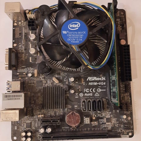 Hyvässä kunnossa olevat emolevy ja prosessori. Itse olen käyttänyt näitä pelaamiseen.