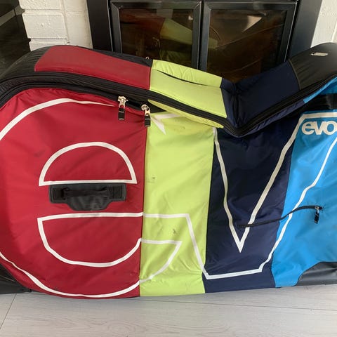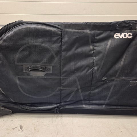 Myydään Evoc Bike travel bag Macaskill pyöränkuljetuslaukku ja Evoc bike stand teline. Laukkuun mahtuu 29" maastopyörä tai maantiepyörä.