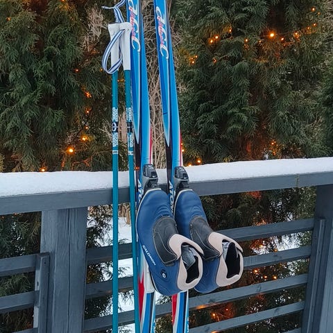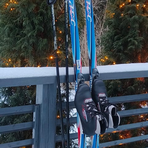 Sukset Karhu 180cm, sauvat exel 142,5cm, monot Karhu 39