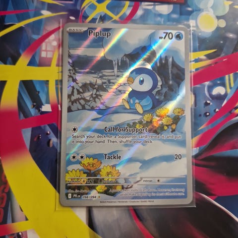 Pokémon Hattrem V -keräilykortti. Holografinen kortti, jossa hyökkäykset Play Rough ja Pulverizing Press. Kortin takana perinteinen sininen Pokémon-korttitausta poképallokuvalla. Soveltuu Pokémon-korttikokoelmaan tai pelaamiseen.