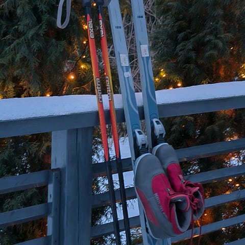 Sukset atomic 130cm, sauvat karhu 110cm, monot Salomon 35,5
