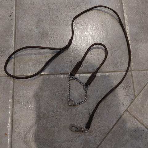 Keltainen puolikurra nahkapanta, 43cm, tämäkin käyttämätön. Pet no 1 tekemä.