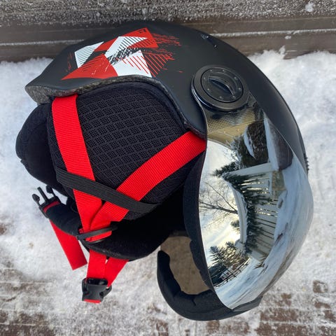 Hyväkuntoinen laskettelukypärä nuorille. Käytön jälkiä