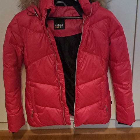Rukka naisten parka untuvatakki, koko 38. Säädettävä ja irrotettava huppu. Irrotettava, tekokarvainen hupun reunus. Hihansuissa tarranauhasäätö. Joustavat sisemmät hihansuut. Kaksi läppätaskua edessä. Vetoketjullinen sisätasku. Kaksisuuntainen vetoketju edessä. Sileä vuori. Lämmin untuvatoppaus.