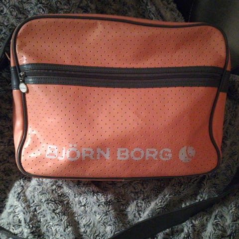Björn Borg musta laukku, korkeus 27cm ja leveys 38cm. Postitan Toridiilillä tai haku Etelä-Leppävaarasta. :)