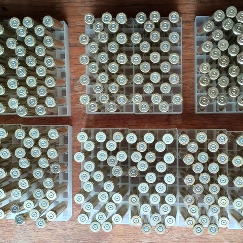Ei mitään radalta kerättyä roinaa, kerran tehtaan latauksella ammuttuja. Nallit poistettu ja pesty. 50 kpl pusseissa.