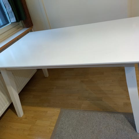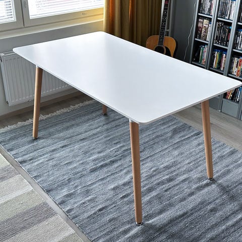 Neat and practical dining table in a fresh white color. The compact size fits well in small kitchens or apartments, yet comfortably seats up to four people. Easy-care surface and sturdy legs.