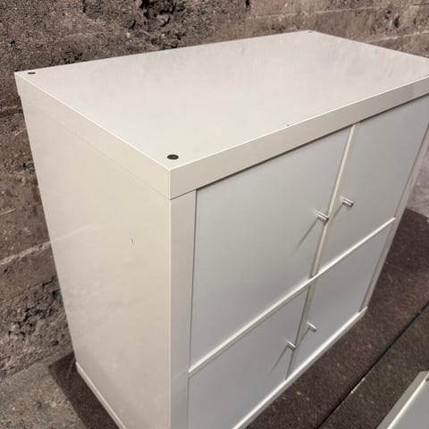IKEA korkea valkoinen kaappi, jossa kaksi umpiovea. Sopii esimerkiksi säilytyskaapiksi eteiseen, makuuhuoneeseen tai varastotilaan. Huom ovet eivät sulkeudu aina kunnolla, mutta varmaan joku osaisi asian korjata. Tämä huomioitu hinnassa. Muuten kaappi on siistissä kunnossa.