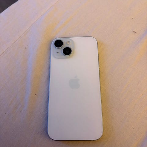 Apple iPhone 15 älypuhelin, tallennustila 128 GB. Vihreä värinen malli, jossa kaksoiskamerajärjestelmä takana. Litteät reunat ja USB‑C‑liitäntä latausta ja tiedonsiirtoa varten. Sopii yleiseen älypuhelinkäyttöön, kuten puheluihin, viestintään, internetin selaamiseen ja sovellusten käyttöön. Kuvissa näkyy akun kunto- ja käyttöliittymätietoja.