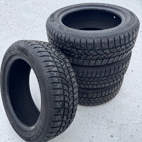 Pintaa n.6mm ja melkein kaikki nastat paikallaan eli lailliset renkaat. Paistopäivä on 2017 eli iällisesti vanhat.