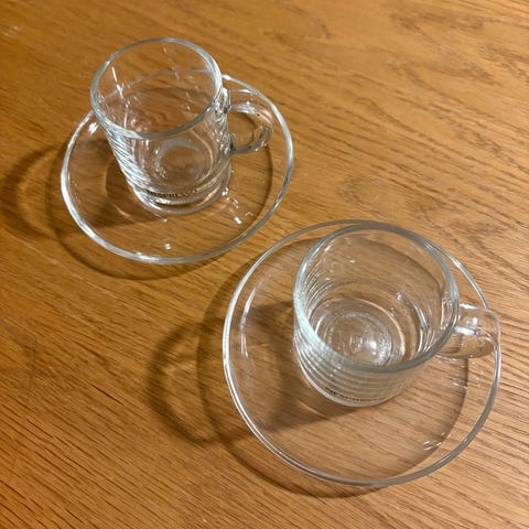 Reilunkokoiset Vertuo mukit. Karkaistu lasi kestää lämpöshokit ja säilyttää lämmön. Pyöristetty muoto istuu luontevasti käteen ja jättää tilaa maidolle tai maitovaahdolle.