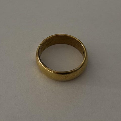 Myydään vanha kultainen sormus.Leima 750 , paino näkyy kuvassa (8.44g)18mm