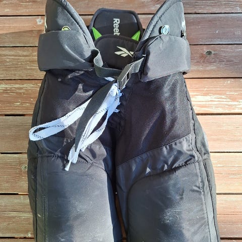 Hyvä kuntoiset jääkiekko housut. Pientä kulumaa löytyy, mutta vielä menee pitkään käytössä. Tarkkaa kokoa vaikea sanoa, mutta sopii n.170-180cm pelaajalle.