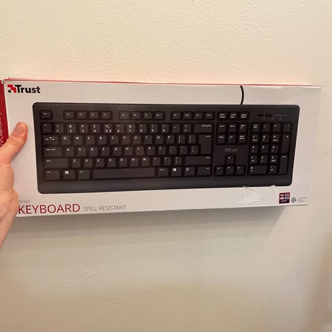 Vähän käytetty trust- merkkinen tietokoneen näppäimistö. Perushyvä toimiva näppäimistö. Johdon pituus 1.8m.