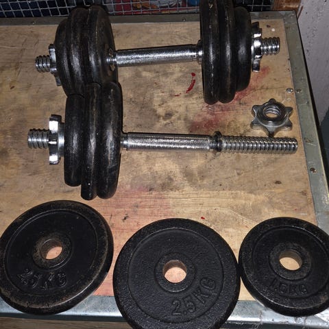Käsipainosetti 10 kg, sisältää painolevyt, halkaisija 30/31 mm, valurautaa