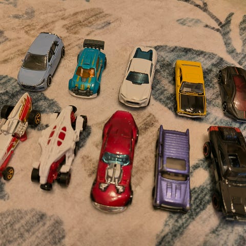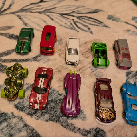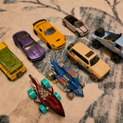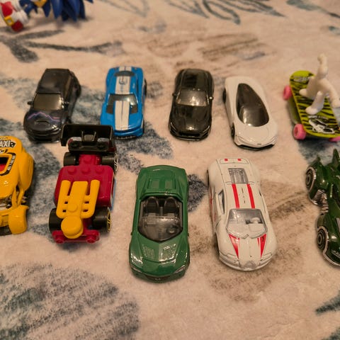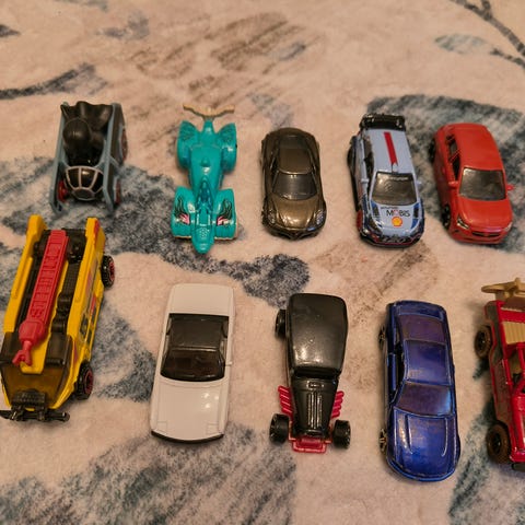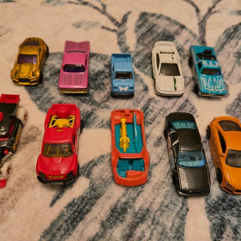 Setissä kymmenen pikku autoa yhteensä 5€.