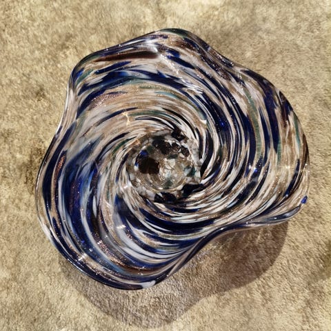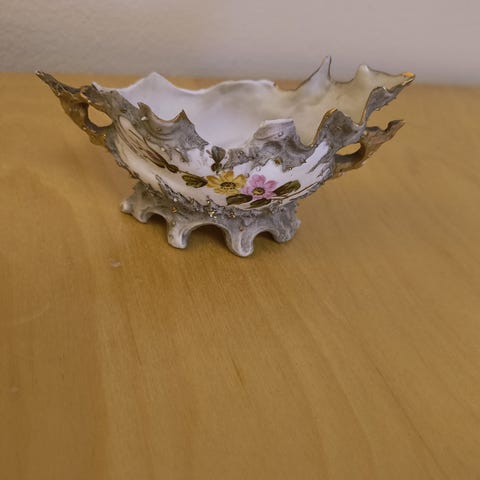 Keraaminen koristekulho, jossa piru. Lasitus on ruskean, valkoisen ja vihertävän sävyinen, ja pinnassa on kiiltävä viimeistely. Kulho soveltuu esimerkiksi sisustuskoristeeksi, tarjoilukulhoksi kuiville elintarvikkeille tai pienten esineiden säilytykseen. Materiaalina on poltettu keramiikka. Korkeus n. 8cm, leveys n. 15cm
