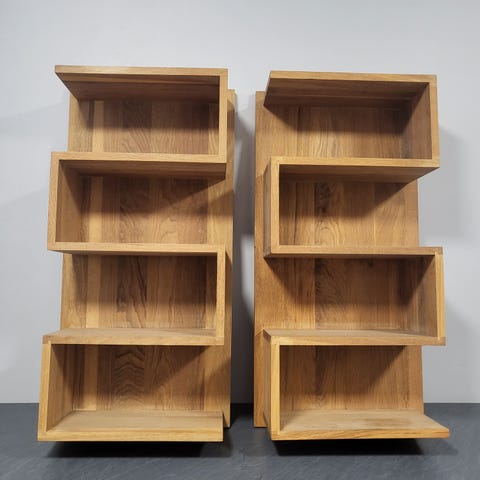 Kaksi hyllylevyä (200 cm x 20 cm ja 120 x 20). Sekä kaksi nahkaista ripustinta. Hylly tulee siis roikkumaan niiden varaan.