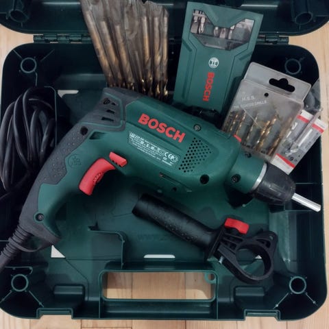 Kompaktin kokoinen pora metallisella pikaistukalla.