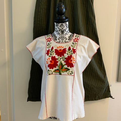 Myyntiin ihana harrasteompelijan tekemä mansikkakuvioinen toppi, selässä nauhakiinnitys. Materiaali 100% puuvillaa. Koko noin M-L.