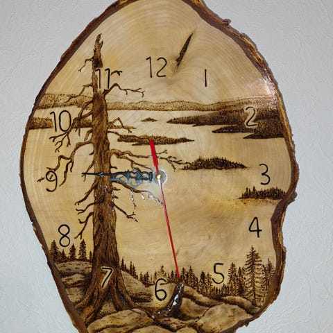 Puinen, tuppeen sahatusta laudasta tehty seinäkello, jossa yhdistettynä kello, ilmapuntari, kosteusmittari ja lämpömittari. Kellossa on selkeät numerot ja metallinväriset viisarit. Alapuolella on kolme pyöreää mittaria, joista yksi näyttää ilmanpainetta (barometri), yksi ilmankosteutta (hygrometri) ja yksi lämpötilaa (lämpömittari). Sopii sisäkäyttöön esimerkiksi olohuoneeseen, mökille tai eteiseen ajan, sään ja sisäolosuhteiden seuraamiseen. Pituutta n. 68cm, leveimmästä kohdasta 16cm leveä. Voin lähettääkin, mutta ainakin postin pakettina hankalan pituinen.
