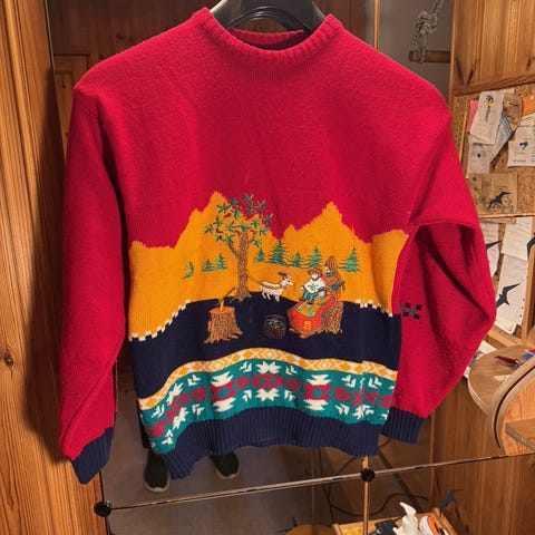 Itse neulottu 7 veljestä langasta, noin koko L.