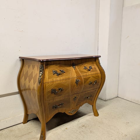 Kaunis, hyvin pidetty Rokokoo tyylin pikku kaappi / lipasto myytävänä. Runko kaikin puolin ehjä ja tukeva. Sisusta siisti eikä ole hajuja.