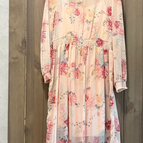 Lindexin Holly & Whyte mekko. Pari kertaa pidetty. Istuvuutta voi hivenen säädellä rusetilla. ”Kietaisuosa” on kiinteä eli ompeleet koko matkalta. Kai-kai-mitta 63cm, pituus olalta helmaan 123cm.