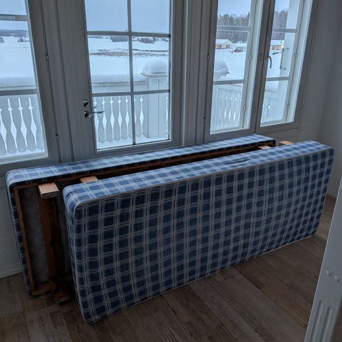Annetaan valkoinen sängynrunko. Patjat ei tule mukaan. Nopea nouto!