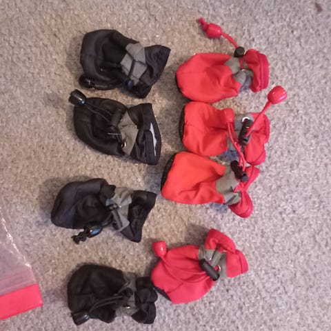 Tossuja 5kpl, uusia, kuvassa näkyy rodut joille ainakin sopii. Kynsiviila kerran kokeiltu, Purulelu muistaakseni kananmakuinen, ei ole kuin kerran käyty haistamassa, ei kelvannut meille. Musta kangastalutin uusi, ruskea nahkainen käytetty, mutta ehjä.