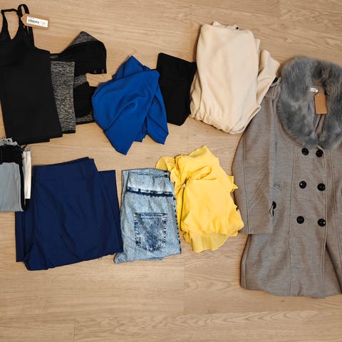 Etsin nuorekasta käytännöllistä/ yhdisteltävää vaatetta. Pitemmän mallisia paitoja, toppeja, tunikoita ja neuletakkeja. Ei vartalon myötäisiä! Housut voivat olla kapeampia.. 😅