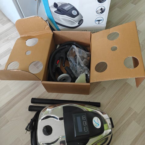 Toimintaperiaate: Höyry ja imurointi yhdellä kertaa takaavat erinomaiset puhdistustulokset, jopa pinttyneelle lialle. Käyttökohde: Erityisesti suunniteltu kaupalliseen ja ammattikäyttöön suuren suorituskykynsä ja kapasiteettinsa ansiosta. Tekniset tiedot:Kattilan teho: 1450 W, Maksimi höyrypaine: 4-5 bar, Maksimilämpötila: 130°C, Puhtaan veden säiliö: 6,5 litraa, Lian säiliö: 11 litraa. Laite on käytetty, mutta se on hyvässä kunnossa. Pieniä käytön jälkiä näkyy pinnassa.