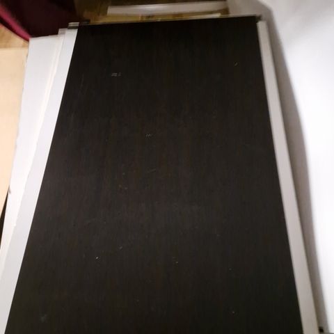 Sähköpöydässä kiinni ollut 80 x 160 cm valkoinen melamiininen pöytälevy.