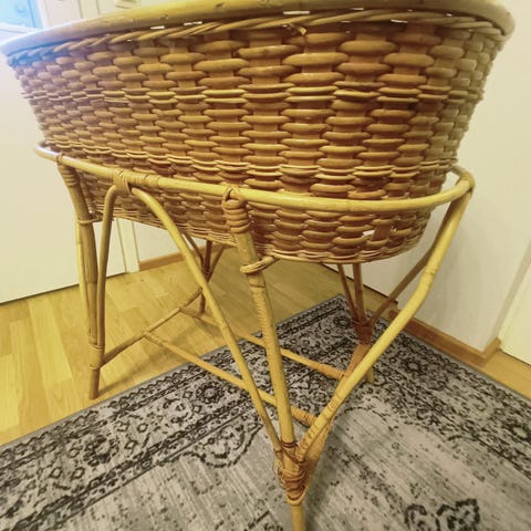 Myydään korisänky, jonka pohjaan kirjoitettu nimiä.