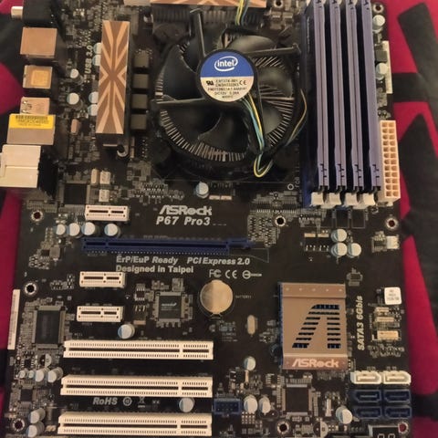 Emolevy ollut käytössä vajaan vuoden ja prosessori ollut vajaan kuukauden takuupalautusta odotellessa. Mukaan myös AMD vakiojäähdytin.