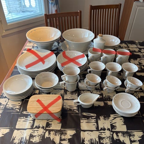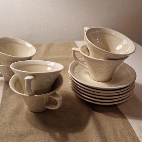 Sekalainen setti Pentikin Vanilja-sarjan astioita. Käyttämättömiä.