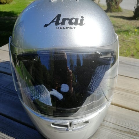 Myynnissä uniikki vintage Arai -moottoripyöräkypärä custom-designilla!