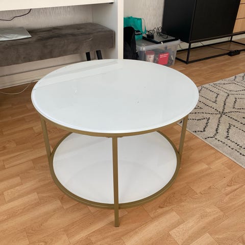 Fiksu valkoinen sohvapöytä. Valkoinen runko/ lasipäällynen