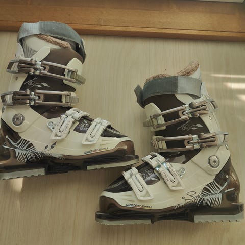 Hyvälaatuiset Fischer Ranger 60 alppimonot, pohjan pituus 263 mm ja sisämitta 225 mm, eli vastaa kokoa 35-36. Monoissa neljä säädettävää solkea ja power strap -remmi varren yläosassa.