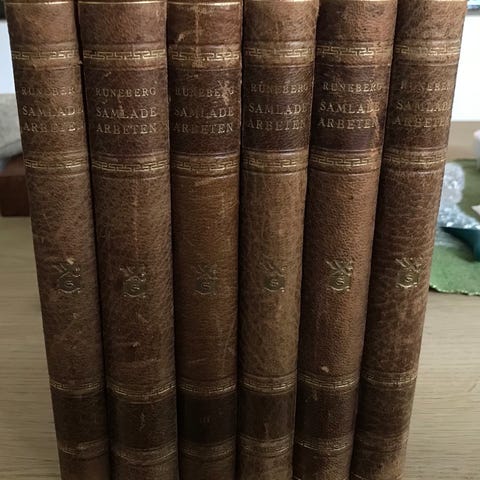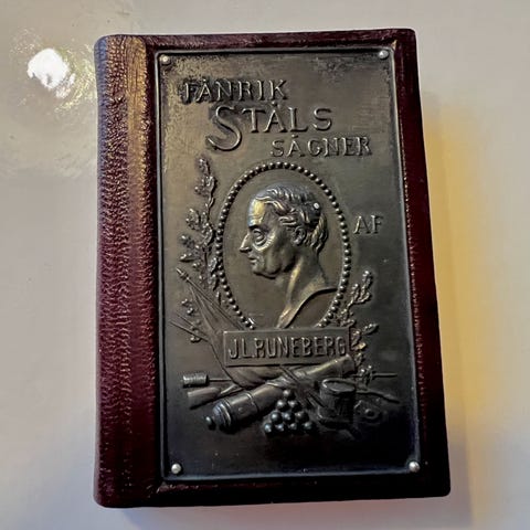 Kirja on yli 130 vuotta vanha. Siihen nähden kohtuullisessa kunnossa. Vuoden 1895 painoksen Runebergin Kuningas Fjalarista (1844) on kuvittanut Albert Edelfelt. Kirja saattaa olla nähtävillä Kansalliskirjastossa. Näitä ei taida montaa olla jäljellä.