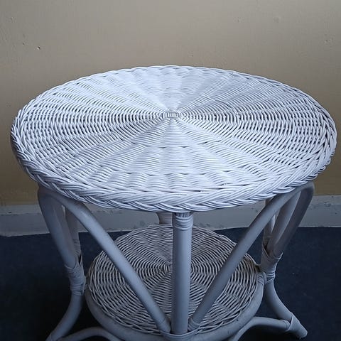 Kaksi taitettavaa puutuolia ja pieni puinen pöytä, melko kuluneet pinnat, näkyy kuvasta