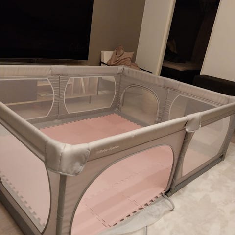 Rakenteellisesti ehjä, käytetyssä kunnossa oleva modulaarinen leikkikehä. Tästä voi siis tehdä mieluisensa kokoisen ja muotoisen.