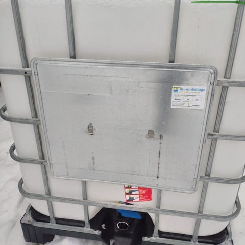 Elintarvikekäytössä ollut pesty 1000-litran ibc-kontti. Siistissä kunnossa, myrkytön.
