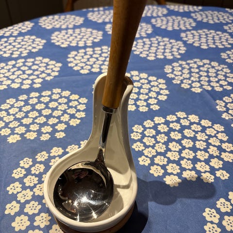 Myydään kaunis kauhanlepuuttaja punertavalla kuviolla. Valmistaja Lapin Savi. Päässä reikä, josta saa roikkumaan.