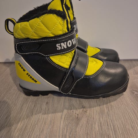 Snow Storm lasten hiihtomonot. Kengissä on musta ja keltainen päällinen, tarrakiinnitys ja karvavuori sisäpuolella. Koko 32. Kuin uudet!