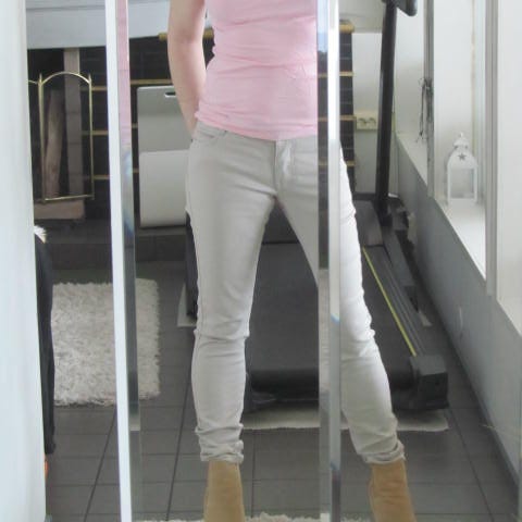 Mustat (tehdaspesukäsitellyt) farkut, materiaali 85%puuvillaa 15%polyester. Koko 38, vyötärössä osittaiset 'venykkeet, neljä taskua. Kaikki laput tuotteessa kiinni.