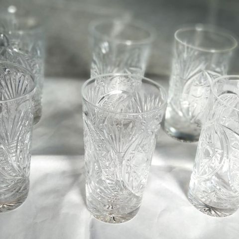 Aivan upeat, painavat kristallilasit. Tarkka alkuperä ei ole tiedossa.